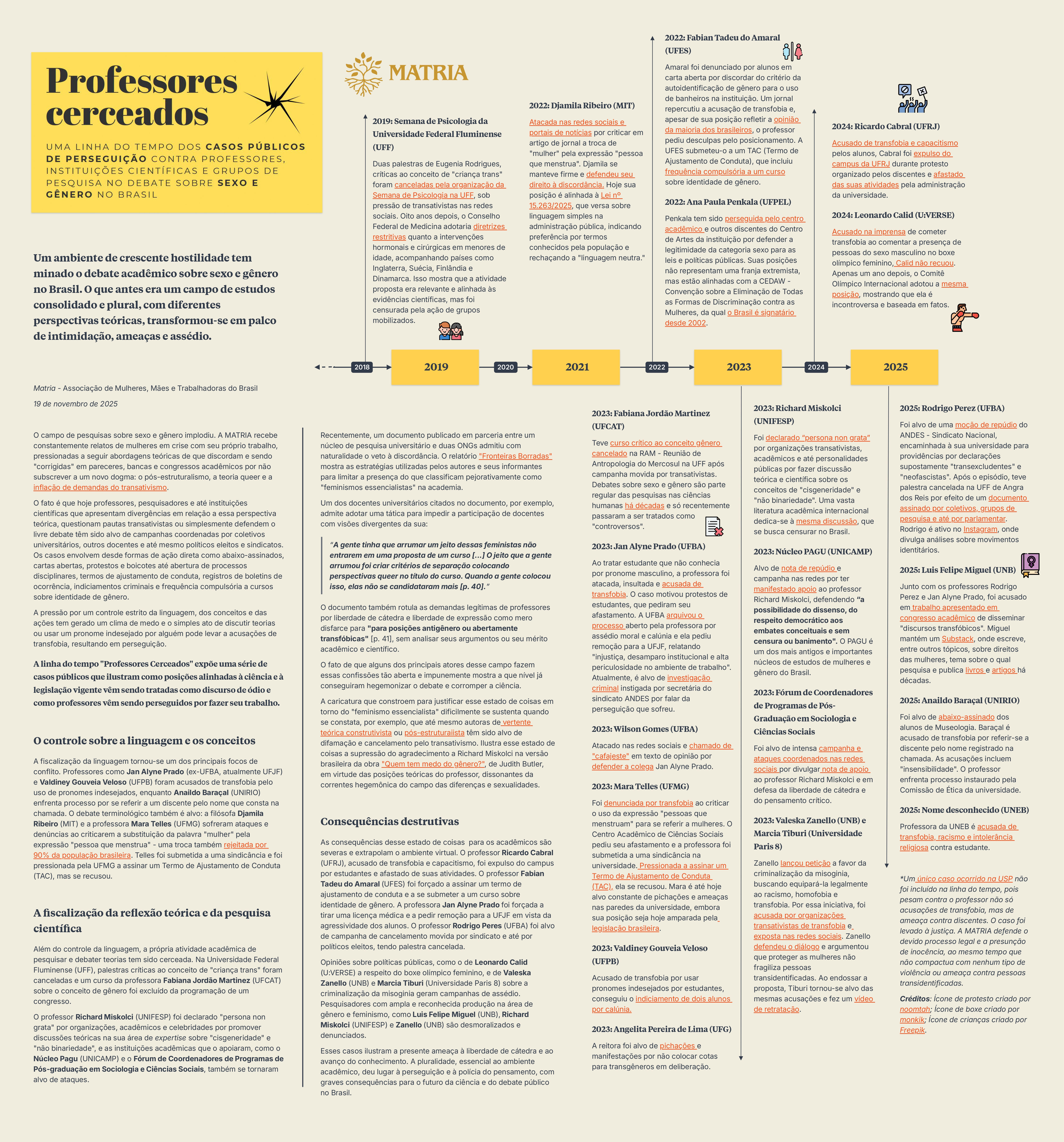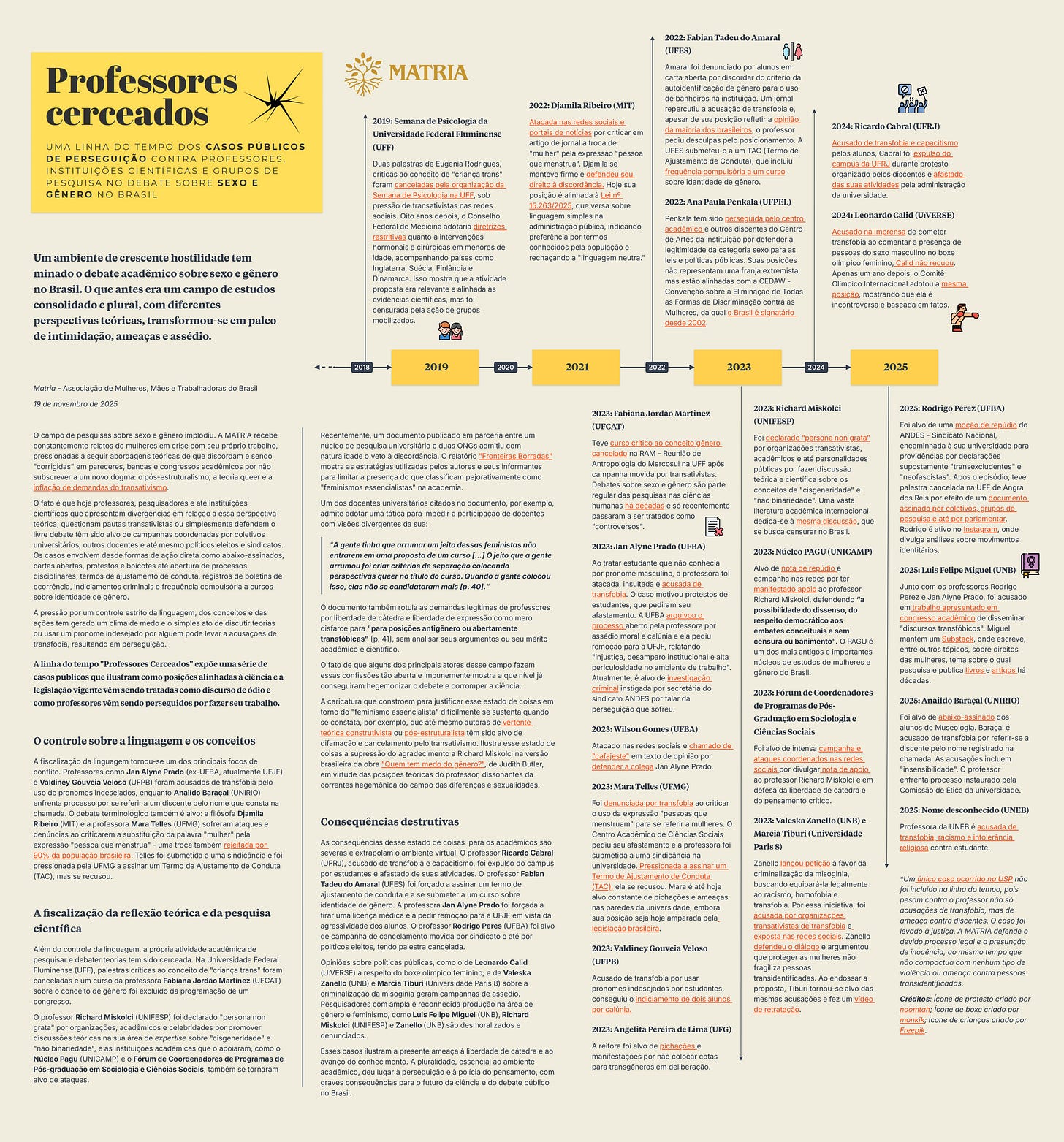 Uma linha do tempo dos casos públicos de perseguição contra professores, instituições científicas e grupos de pesquisa no debate sobre sexo e gênero no Brasil